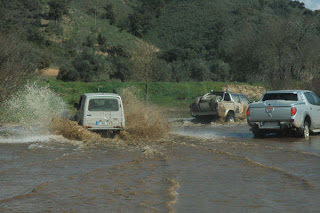 No Domingo, depois do merecido descanso dos "guerreiros", às 09:00 o grupo fez-se aos trilhos que ligam Silves à Barragem de Sta. Clara entre ribeiras, densa vegetação, caminhos de cabras panorâmicos. Já em terras alentejanas, o almoço foi servido na Barragem. Como sempre, imperou um forte espírito de camaradagem, principalmente quando os participantes desafiaram a perícia para vencer alguns trilhos enlameados, atravessar ribeiras e outros obstáculos serranos que impuseram algumas saídas a guincho. Alguns participantes ficaram atolados e houve uma situação de avaria mecânica com um dos participantes. Dois carros com pessoal da organização, o do participante que teve a avaria e ainda o do seu amigo chegaram ao almoço duas horas depois dos primeiros participantes terem chegado à barragem.